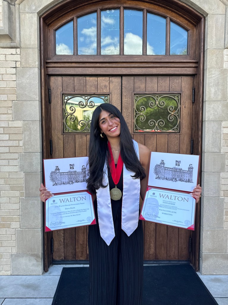 I am proud to share that my thesis was honored with the ‘Outstanding Thesis’ Award, selected from all business honors students’ papers, at the Walton Honors ceremony before graduation. Additionally, I received fourth place in the Undergraduate Research Symposium Poster Competition held by the University.